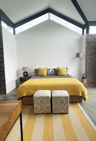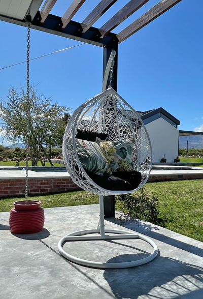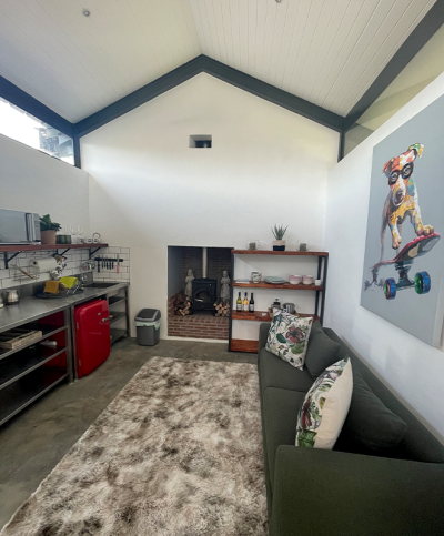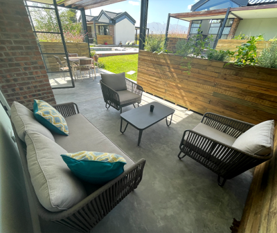 This beautiful and cosy one-bedroom cottage has a luxurious queen bed and a separate bathroom with a shower and heated towel rails. A stylish, open plan lounge and kitchenette flows onto a patio with outside seating and a Weber braai. The cottage has a wood-burning stove in the lounge area to ensure guests are warm and cosy during chilly winter evenings. Guests can also enjoy the shared swimming pool and boma area.