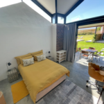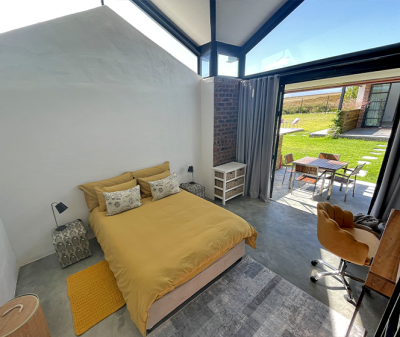 This beautiful one-bedroom cottage has a luxurious king bed and a separate bathroom with a shower and heated towel rails. A sleeper couch in the living room that can accommodate 2 kids.  A stylish, spacious lounge area, fully equipped kitchen, and patio allow guests to relax and enjoy the beautiful mountain views and vibrant working-farm life. The cottage has a wood-burning stove to ensure guests are warm and cosy on the chilly winter evenings. Outside, guests can enjoy their own patio or relax in the garden or shared swimming pool and boma area. Private “braai” facilities are available.