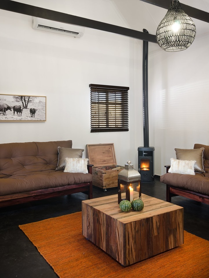 A central large 3 bedroom area houses a communal dining, barbecue and recreation area while the extra bedrooms and bathrooms are situated in 4 separate granny flats, 2 of which have a small kitchenette. Relax on a large porch , barbecue or cook on a wood stove indoors or outdoors while still having all the convenience of electrical appliances and refrigeration in a large well equipped central kitchen. Enjoy sun downers on the pool deck overlooking a game waterhole. Location and design of the house creates a perfect place for special events, family reunions or intimate weddings.