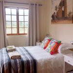 This room is calm and peaceful, decorated in Mozambican greens with touches of our grandmother’s antique furniture, and printed canvas images from our photographer friends which accentuate the color elements. It has twin beds with an en-suite bathroom consisting of a shower, loo and washbasin. The room also has a coffee station with plunger coffee and tea making facilities. It has its own entrance with lockable door and is connected to the Main house via an extended veranda. Ten (10) steps lead to the veranda which makes the room unsuitable for persons with walking difficulties. No self-catering option. No extra beds. Free WiFi access is available.