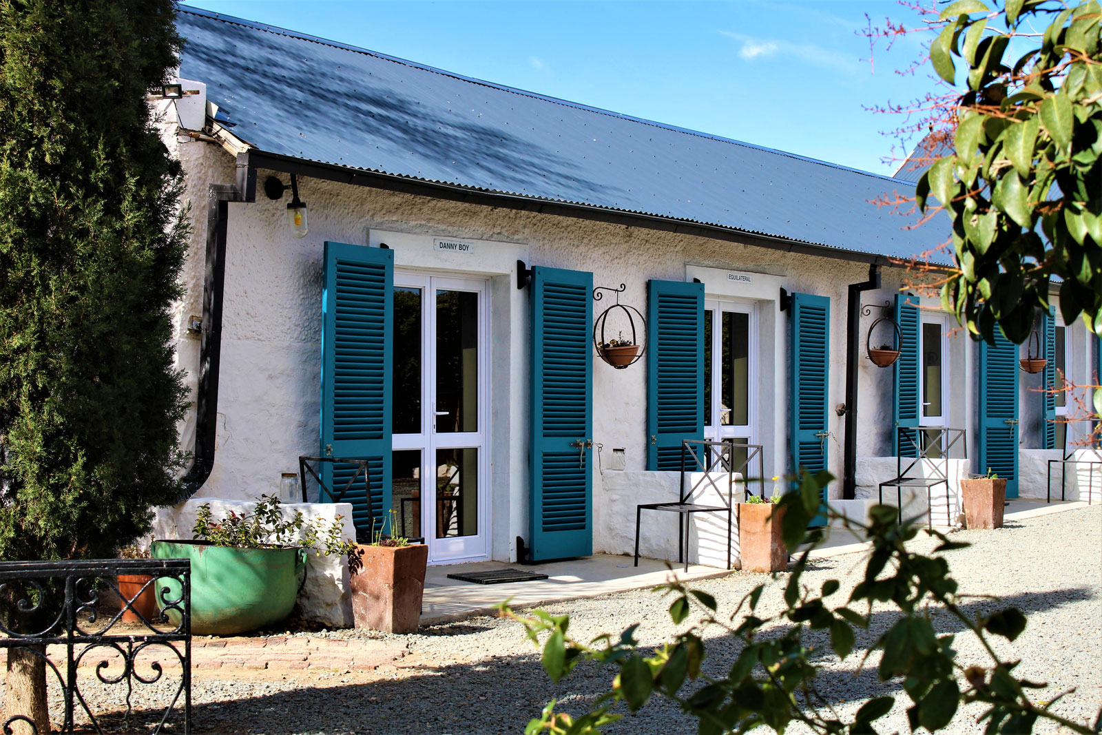 The white gabled stables were formerly used for racehorses. Today, they offer tasteful farm accommodation with Cape Heritage nuances and a sense of sophistication, charm and comfort.