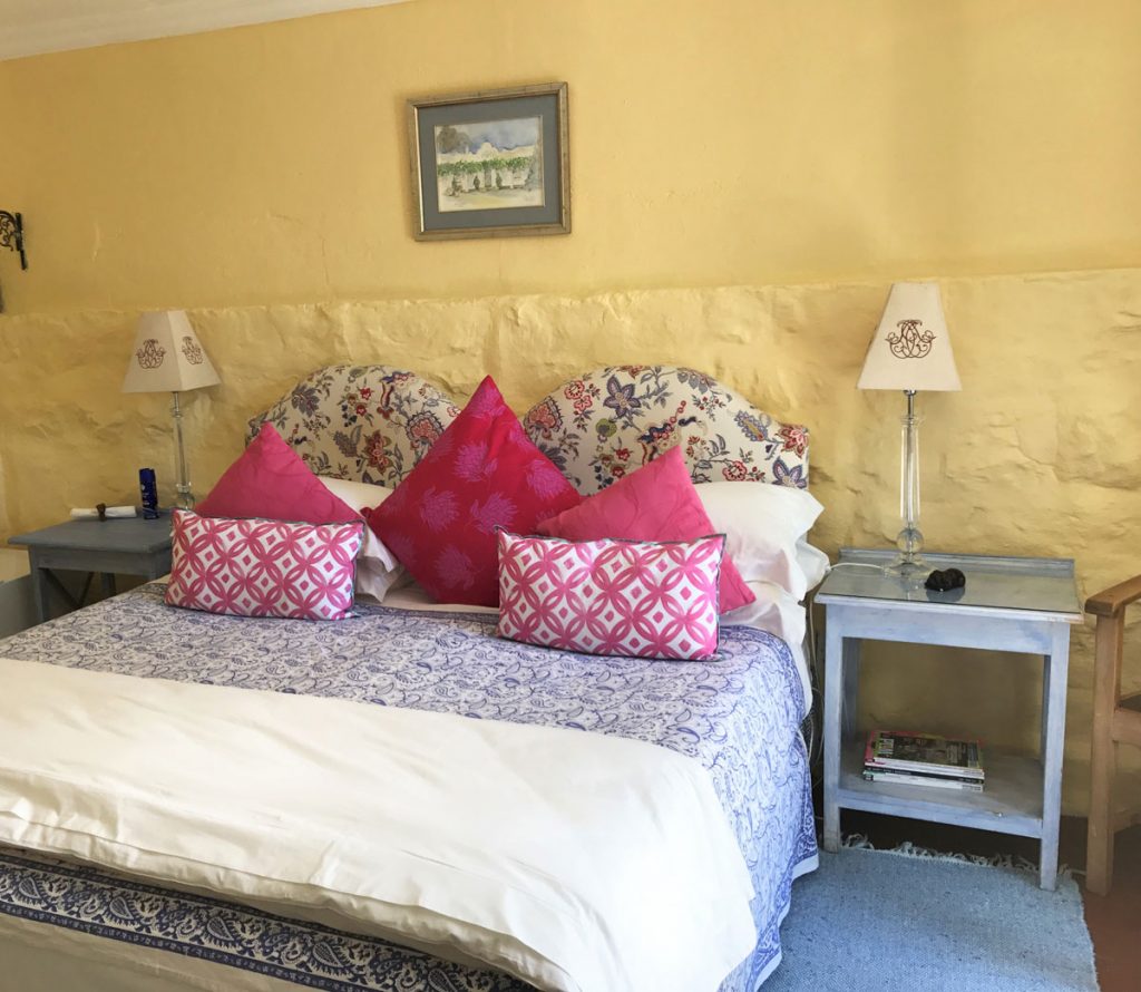 The elegant old stable quarters have been converted into the inviting Kuilfontein Stable Cottages, each exuding a style and comfort of its own. Crisp, white cotton percale linen, mohair blankets, and feather pillows create rooms that are luxurious, while the family antiques that decorate them add character.