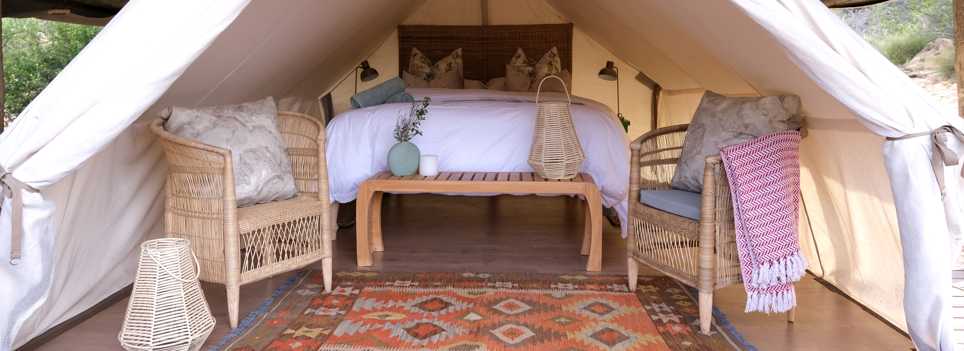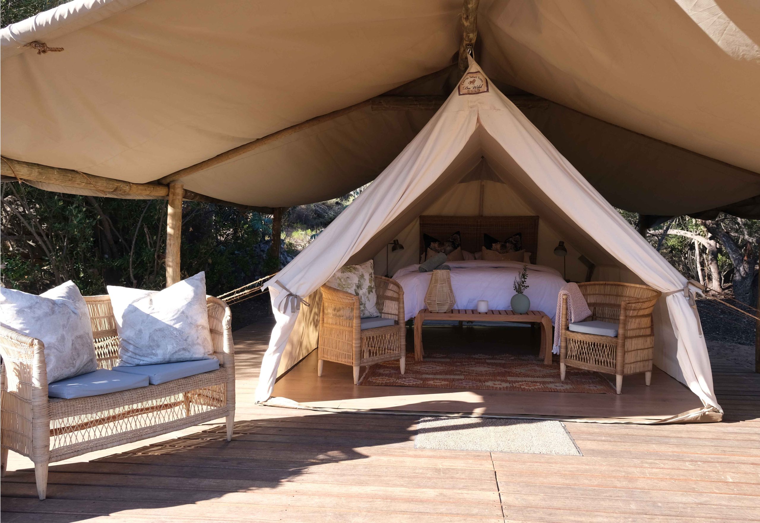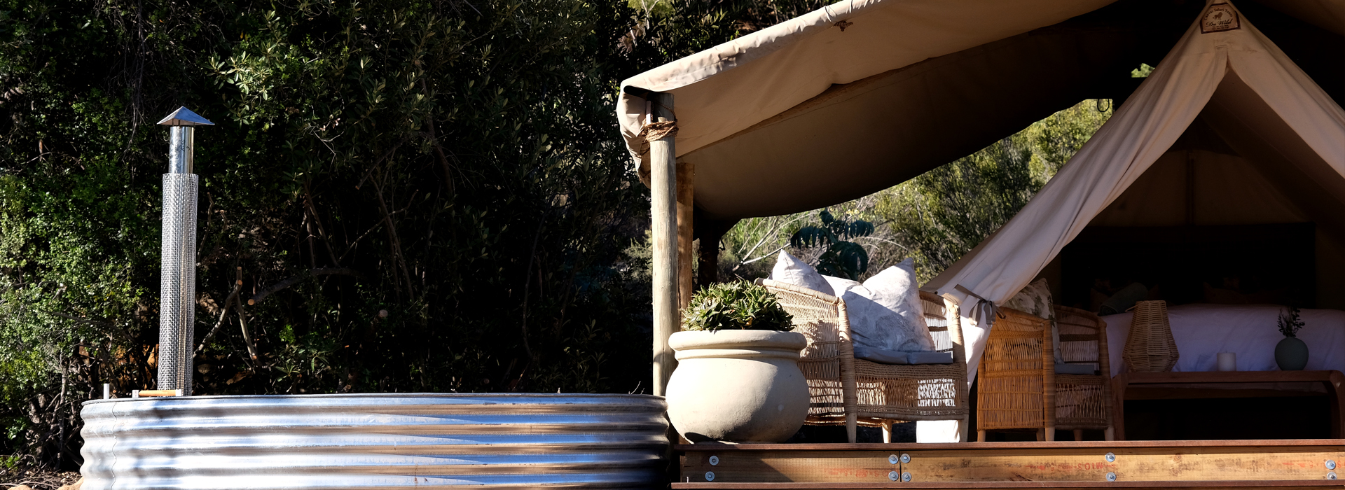 The 2 boutique glamping tents, Wild Olive & Waboom Protea, provide the perfect getaway from the hustle and bustle of city life, into our peaceful valley between Citrusdal and Clanwilliam.