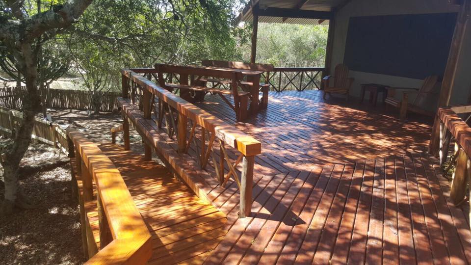 Self-catering unit consists of two luxury en-suite tree top tents sharing a very large deck