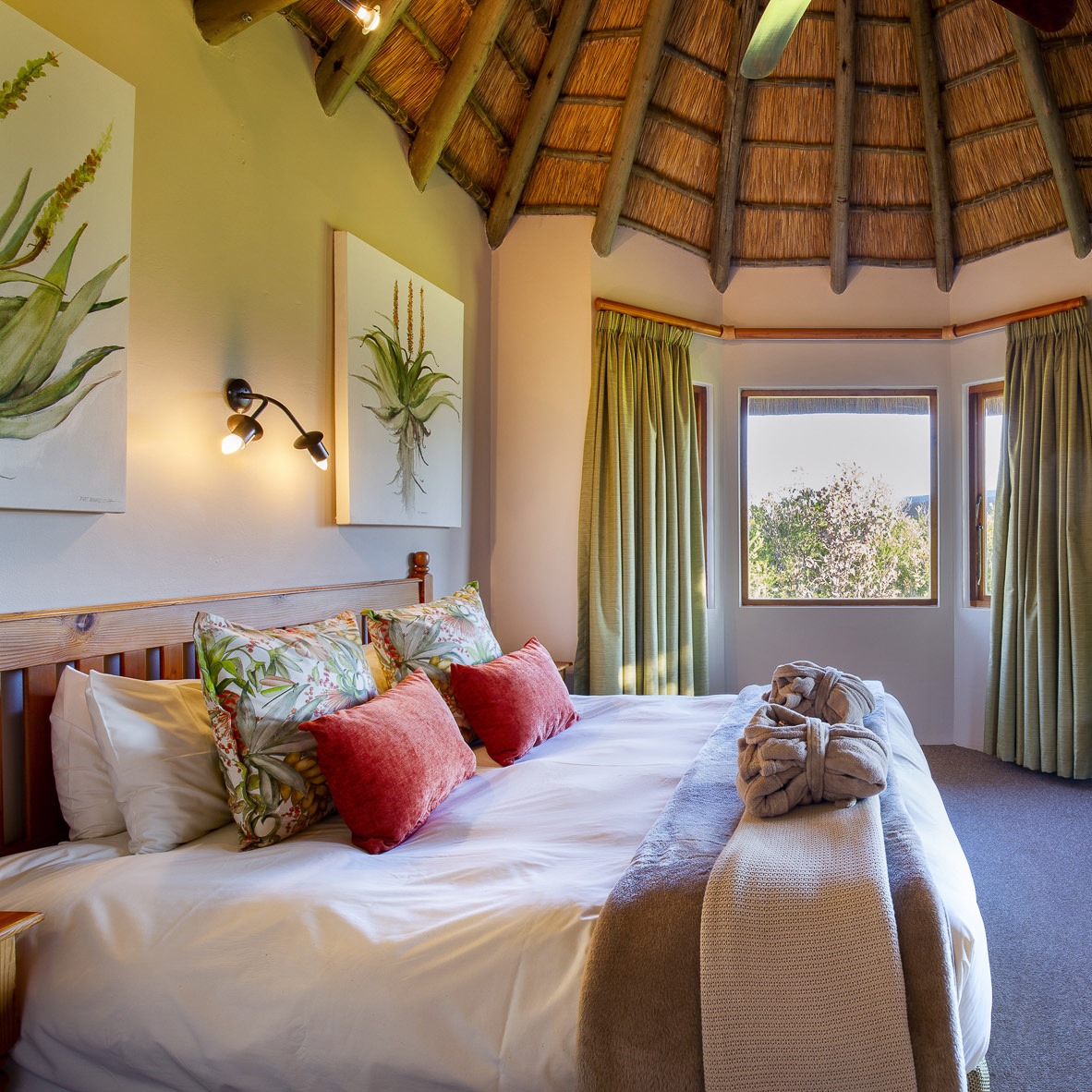 Each free-standing suite is uniquely decorated and has spectacular views of the escarpment. All the suites have tea and coffee making facilities, including a bar fridge for fresh milk. A minibar facility in the suite is available upon request. All suites are fitted with a carport for one vehicle.