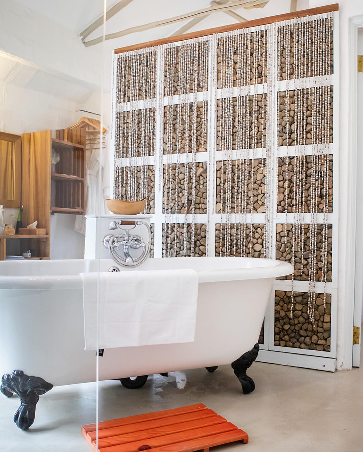 The Greenhouse suite boasts its own chill out deck with hanging basket chairs to enjoy the beautiful gardens and mountain views. With a wraparound deck you can enjoy stunning mountain views straight from your bed. This Suite include luxury finishes such as a handmade Super King camphor wood bed, a freestanding bath and a separate walk-in shower. For extra comfort the Greenhouse Suite boasts, underfloor heating, Aircon and complete blackout curtains.