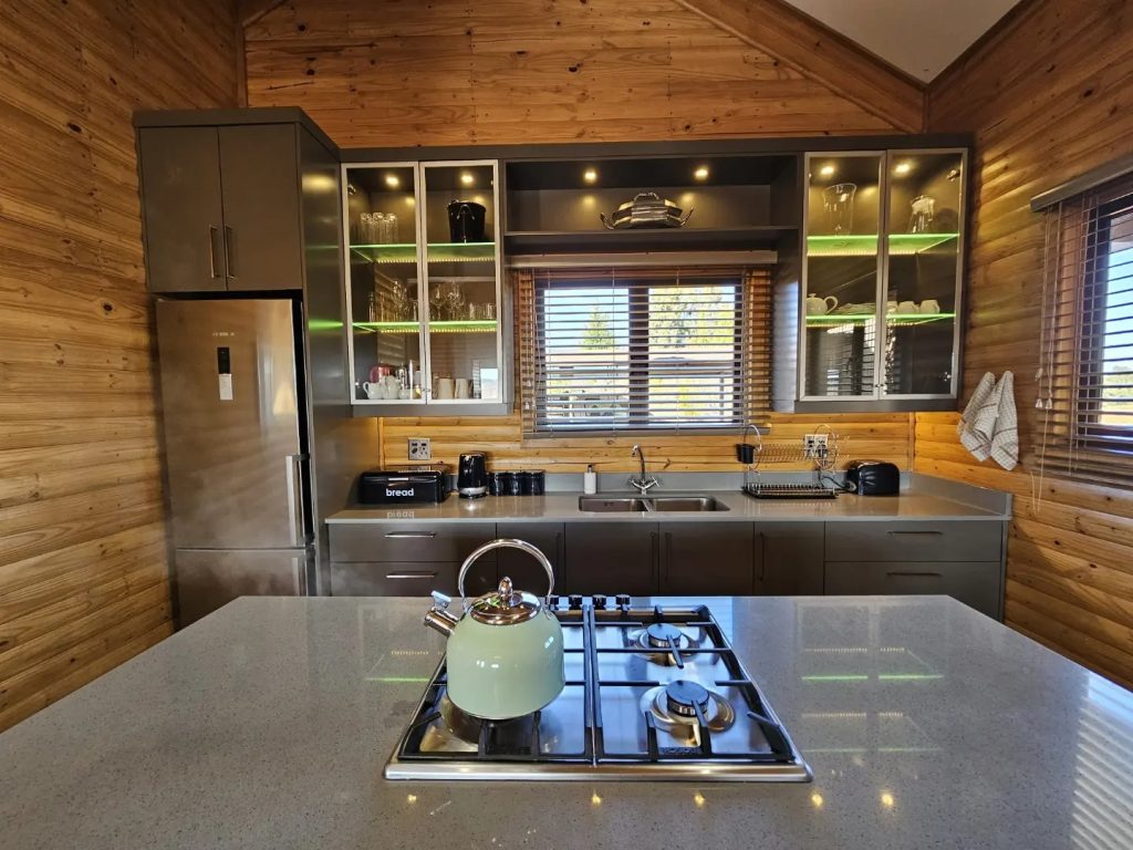 This unique accommodation also boasts a fireplace, perfect for those chilly nights, and a BBQ area. The fully equipped kitchen provides all the amenities you need to prepare your meals, as well as a convenient open-plan layout that allows for easy and relaxed entertaining. All in all, this accommodation in Dullstroom offers a unique experience. Above all, it’s a harmonious blend of comfort, nature, and modern amenities that make for an unforgettable stay.