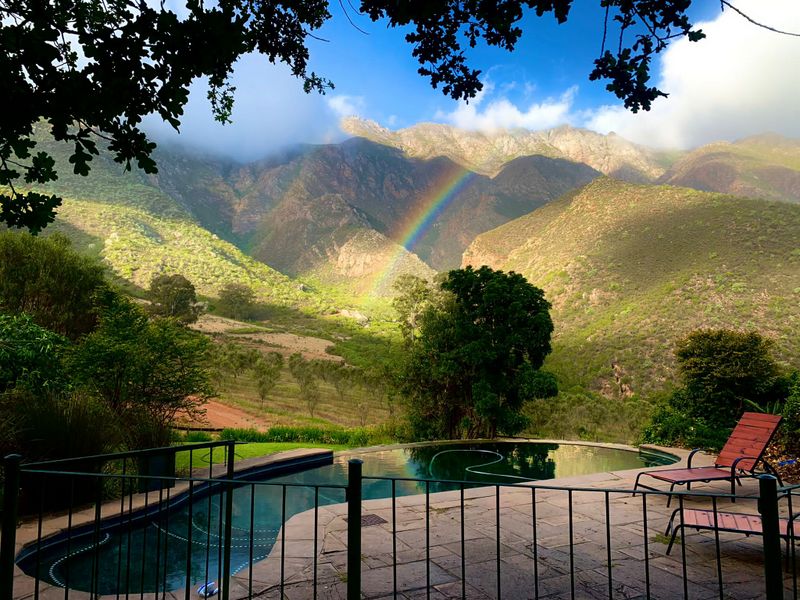 Situated at the top of the farm Quince Cottage looks across the lemon orchards into the Laangeberg mountains. The pool is situated up some steps above the cottage and you can enjoy peace and complete privacy. Enjoy starlit nights. Mountain walks start from the cottage and you may even get a visit from Milly andTilly our donkeys.