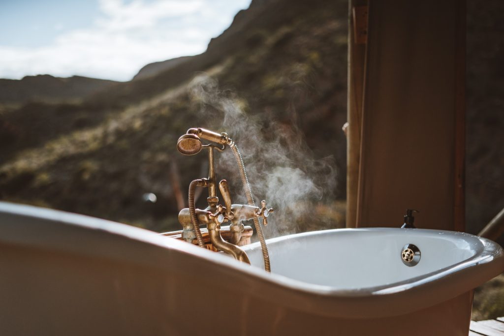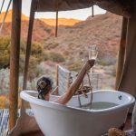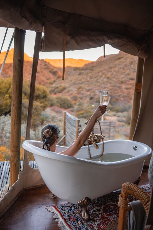 ​The main luxury tented unit consists of; A lounge with a large Chesterfield sofa and 2 armchairs. A fully equipped kitchen with all cooking utensils. A bedroom with a small study area and king-sized bed with premium bed linen. And a bathroom with a large bath, steps lead out to the outdoor shower which boasts incredible views down the valley. We supply guests with hand made soaps and body products that are organic, chemical-free and made with fynbos essential oils.